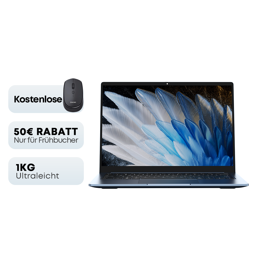 Mit eloxierten und sandgestrahlten Aluminiumlegierungsplatten oben und unten sowie einem kompakten Gehäuse minimiert das CoreBook Air das Volumen und behält gleichzeitig eine unerschütterliche strukturelle Integrität bei. Seine indigoblaue Oberfläche verleiht ihm einen eleganten und raffinierten Touch, ideal sowohl für die Arbeit zu Hause als auch für unterwegs.